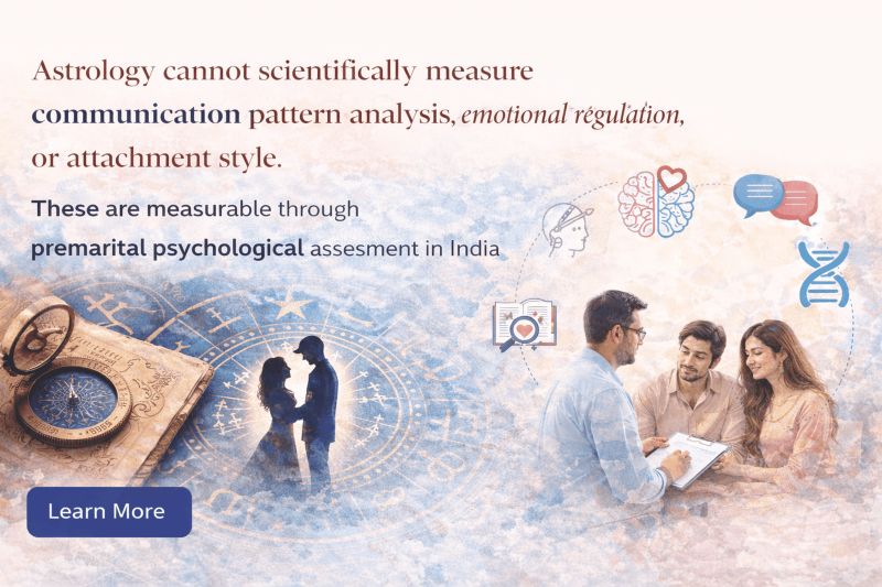 Astrology cannot scientifically measure communication pattern analysis, emotional regulation, or attachment style. These are measurable through premarital psychological assessment in India.
